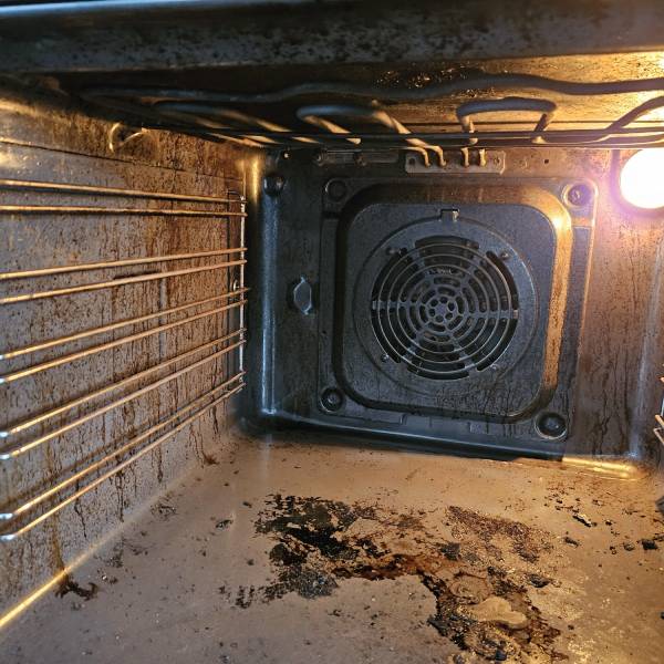 Eelsoojendage konvektsioonahi, grill või tavaline ahi umbes 30 °C-ni, seejärel lülitage ahi välja ja laske sellel veidi jahtuda. Võtke restid ja küpsetusplaadid välja, et pääseksite mugavalt kõigile pindadele ligi. Pühkige lahtine puru enne puhastamist ühekordse rätiku või majapidamispaberiga, et puhastusaine saaks toimida otse rasva ja kõrbenud jääkide kallal.